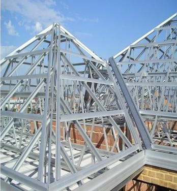 Light Gauge Steel (LGS) trusses — termite-proof, fire-resistant, long spans, fast installation.